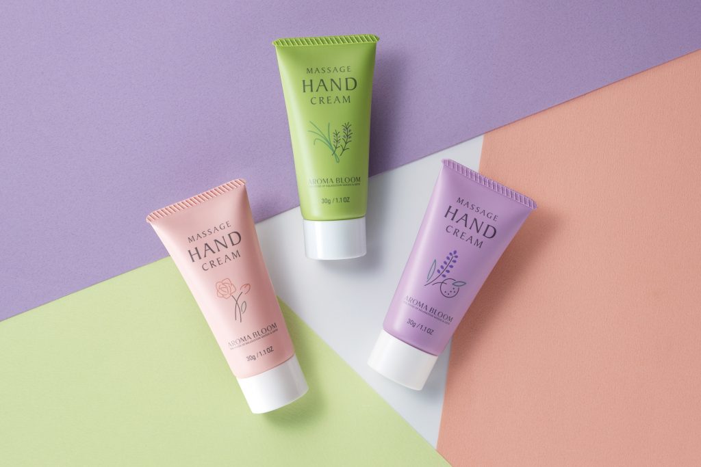 アロマブルームの『マッサージハンドクリーム』シリーズ。