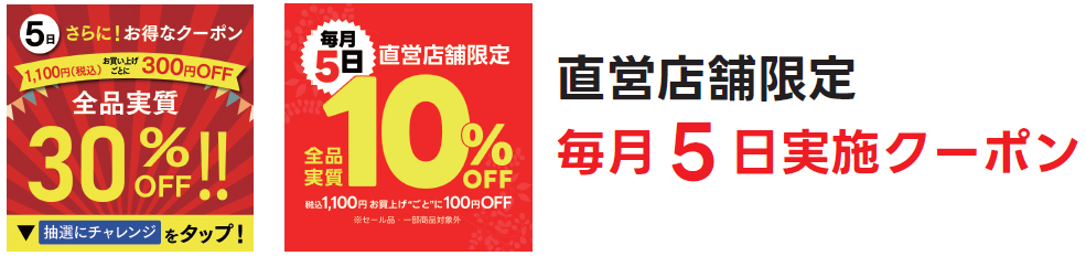 毎月5日にイベント開催しておりました以下のクーポンは、
